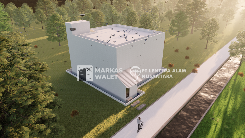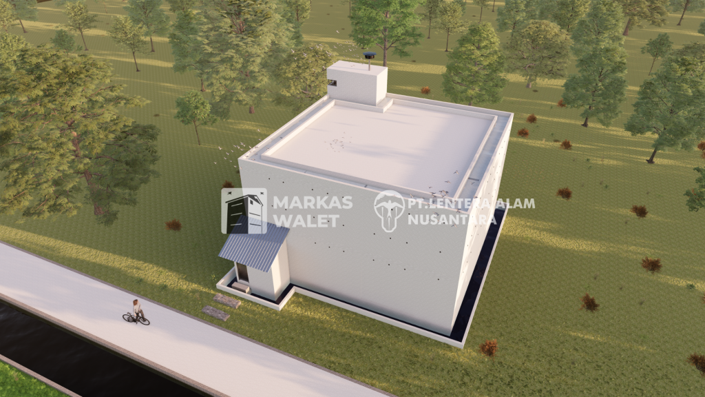 Gedung walet merupakan bangunan khusus yang didesain untuk menampung koloni burung walet yang biasa dijadikan sebagai sumber bahan baku sarang burung walet yang memiliki nilai ekonomis tinggi. Rumah walet yang dirancang dengan baik dapat memberikan lingkungan yang nyaman dan kondusif bagi burung walet sehingga dapat berkembang biak dan menghasilkan sarang yang berkualitas tinggi Dengan berbagai macam ukuran, desain gedung walet dimiliki oleh PT Lentera Alam Nusantara yang tentunya sesuai dengan keinginan dan luas tanah yang dimilikinya. Ukuran 14×14 meter persegi dari gedung walet merupakan salah satu di antaranya.