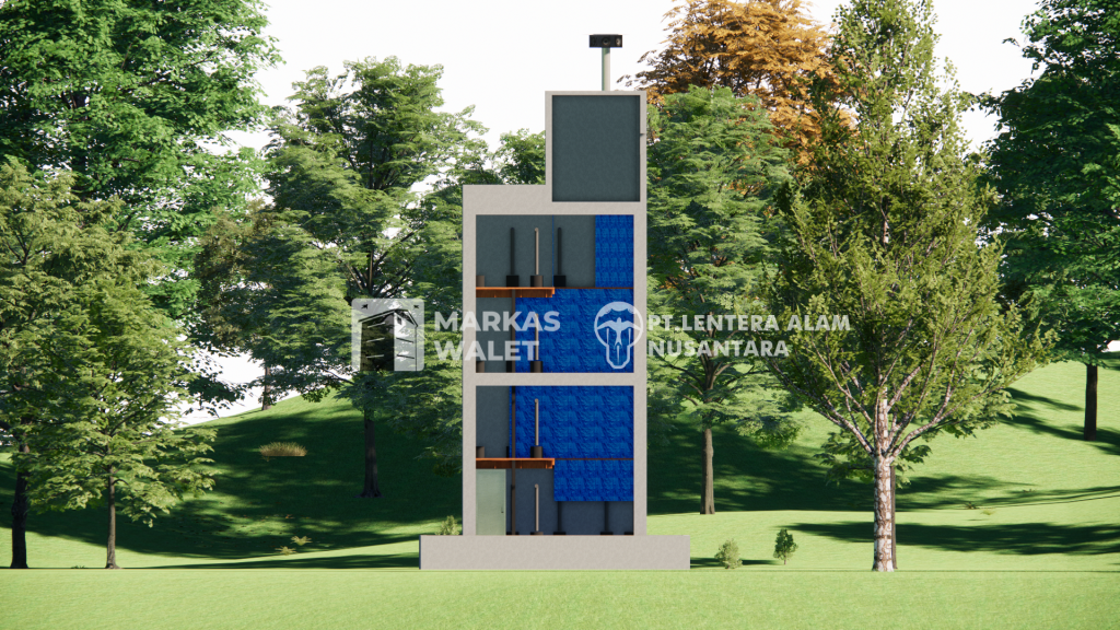 Desain rumah walet sangat penting dalam menentukan keberhasilan bisnis peternakan burung walet. Dengan merancangnya secara baik, rumah walet dapat memberikan lingkungan yang nyaman dan mendukung bagi burung walet sehingga mereka dapat berkembang biak dan menghasilkan sarang yang berkualitas tinggi. Dengan berbagai macam ukuran, desain gedung walet dimiliki oleh PT Lentera Alam Nusantara yang tentunya sesuai dengan keinginan dan luas tanah yang dimilikinya. Salah satunya adalah gedung walet dengan ukuran 4×4 meter persegi.